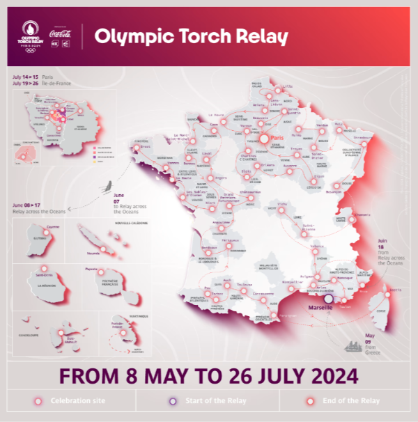 - 프랑스 도착: 성화는 2024년 5월 8일 마르세유에 도착하며, 이 때부터 프랑스 전역을 도는 여정이 시작됩니다.
